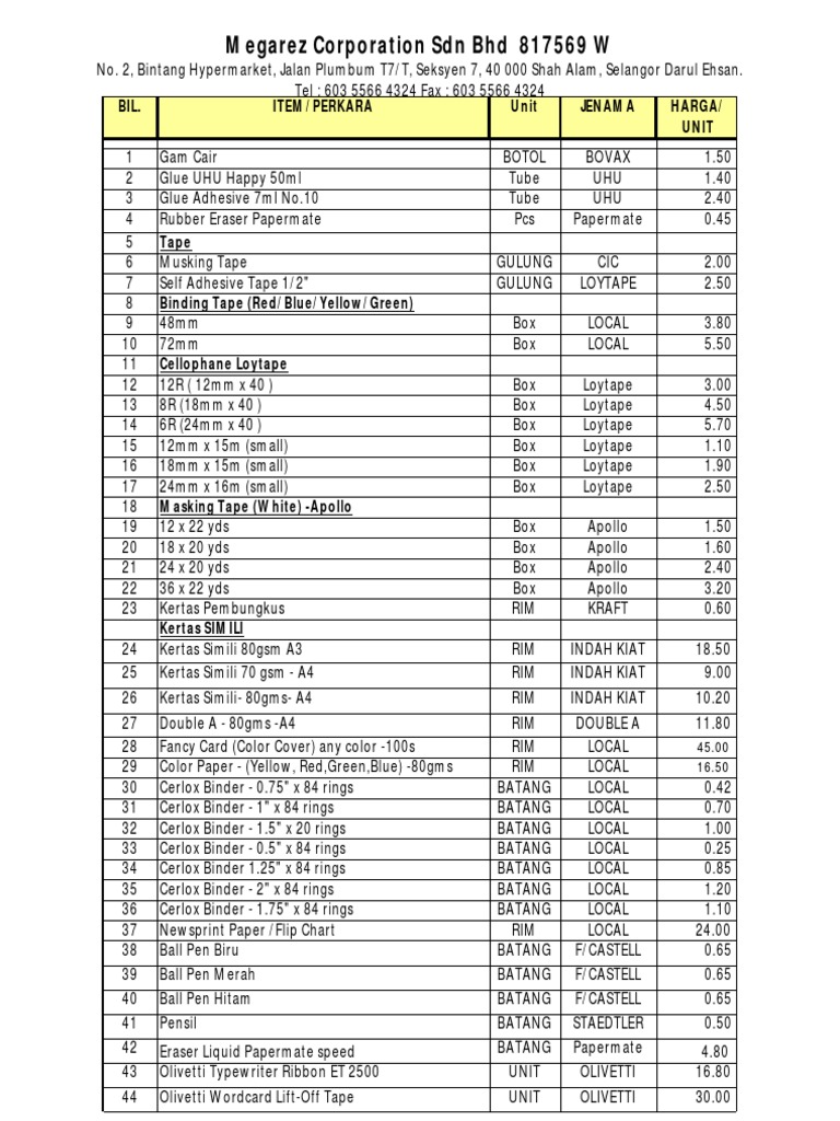Buku Tulis 38 Lbr Sinar Dunia Bh Rp. Senarai Harga Alat Tulis - dojoaki Stationery Dan Alatan Pejabat PDF Senarai Produk Peralatan Pejabat - Dinamik Teguh Sdn Bhd Facebook lain-laindocx - 75 SENARAI PERABOT DAN PERALATAN PEJABAT Jenis Senarai. Anda akan mendapatkan informasi terkini terkait price list atk terbaru yang ditawarkan Bina Mandiri 2.